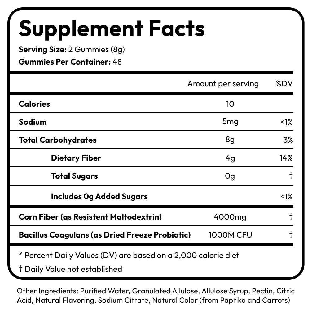 Fiber is only effective if you're consistent. Missing a day because you are travelling or are in a rush will mean you won't see the same clean results. Gummies work best because they're portable and delicious, so not only will you never miss a dose, but you'll actually look forward to them as a treat with every meal.